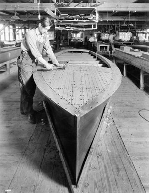The Smiths continued to build their reasonably priced runabouts, and in 1925 produced 111 units in a single year. Jay Smith had the idea to name a special model a “Chris-Craft” after his father. Soon after, all boats built by the Chris Smith & Sons Boat Company were known as Chris-Crafts. The new boats quickly became popular and the company could not keep up with demand. Smith began to build his boats for the first time with an assembly line modeled after the automobile industry. This process allowed his skilled craftsmen to focus on one specific task that they could perfect.